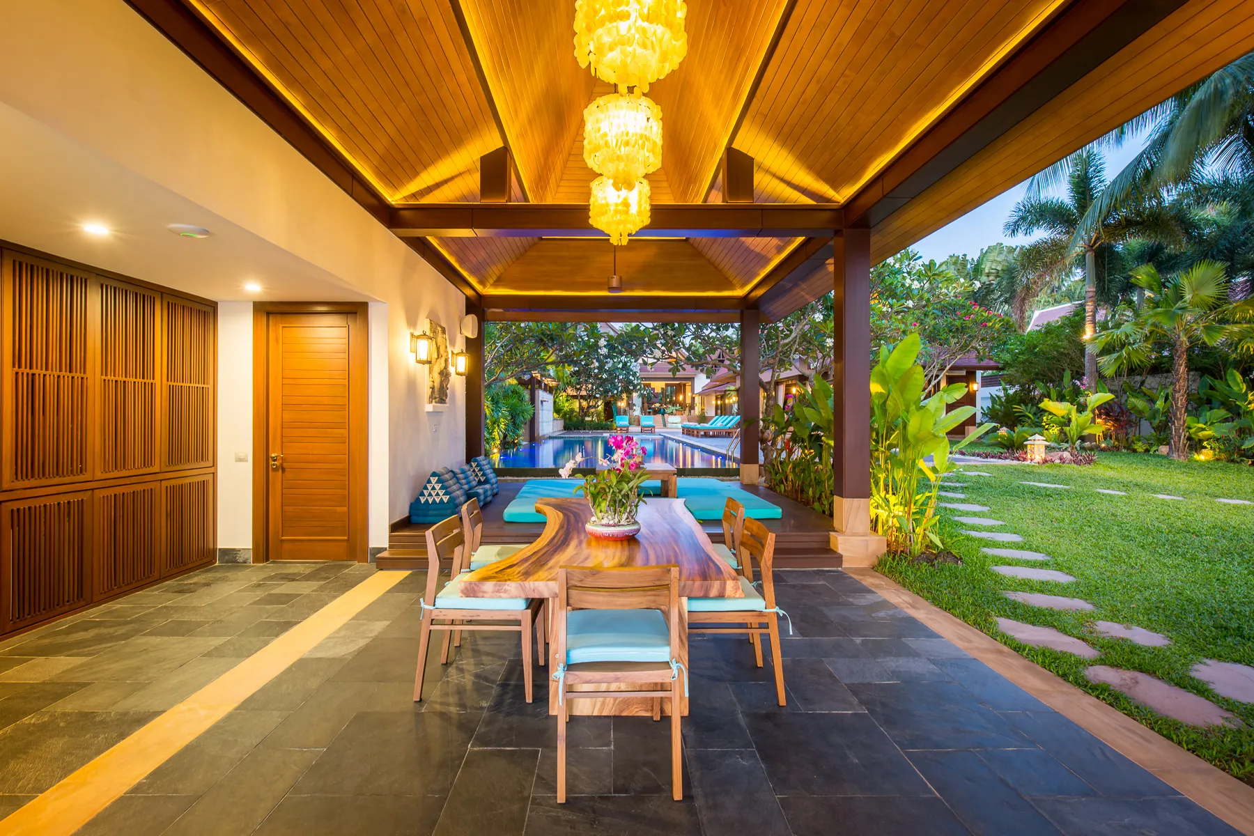 Baan Tao Talay is a luxury beachfront villa in Koh Samui. The villa's design is truly breathtaking, and as soon as you enter, the tranquility of the garden will help you forget the stresses of life and bring a sense of peace. As you pass through the lush garden, you'll be greeted by a large wooden door that opens up to a stunning view of the blue ocean.